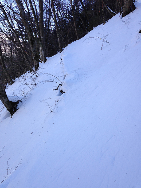 出発が遅れたので核心の急登手前で引き返し、トレースをダブルにして下山した。