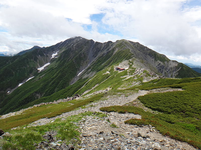 また今年はどこの山も雪が少なくここ北岳でも半月早く花が咲いたそう。 キタダケソウは望み薄でしたが、何とか最後の数株を見ることができ、一安心。 北岳山荘に着く頃には雨も止み、強風を押して間ノ岳を往復できたのは幸いでした。