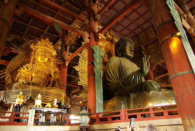 まずはお約束の東大寺にて大仏見物。伽藍も見事で大仏や脇侍仏も素晴らしい迫力でした。
