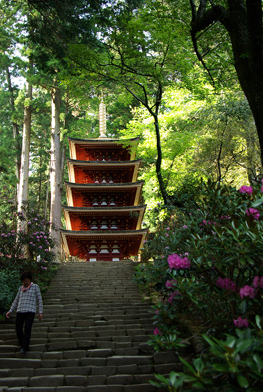 深い森に抱かれた各伽藍と境内を彩る石楠花の花が印象的でした。