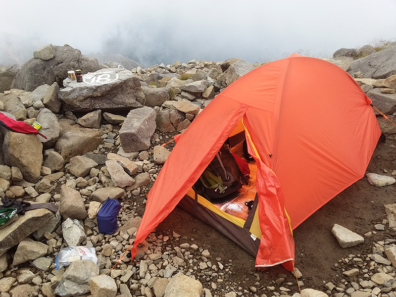 ようやく北穂のテン場に着いた。日本の最高所のテン場らしい。でも小屋から遠すぎる。