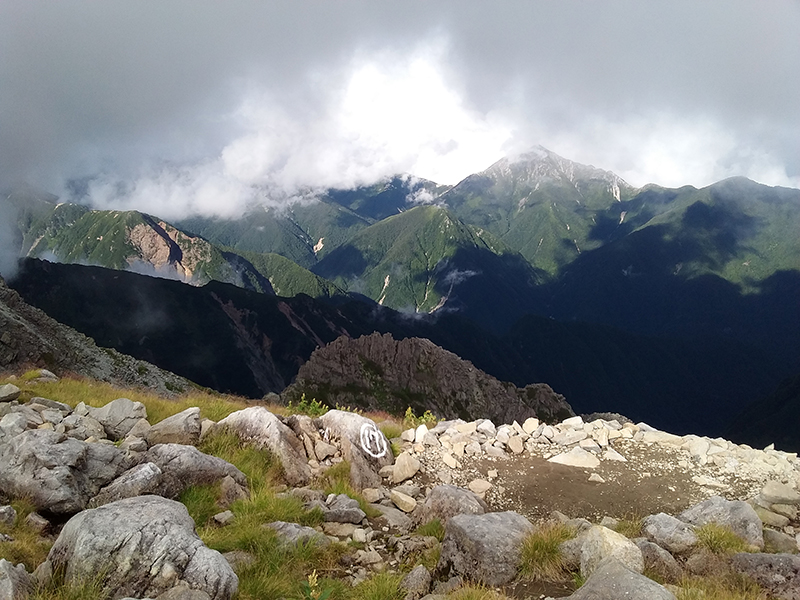 (4:52岳沢小屋テント場発、15:12北穂高岳テント場着)