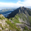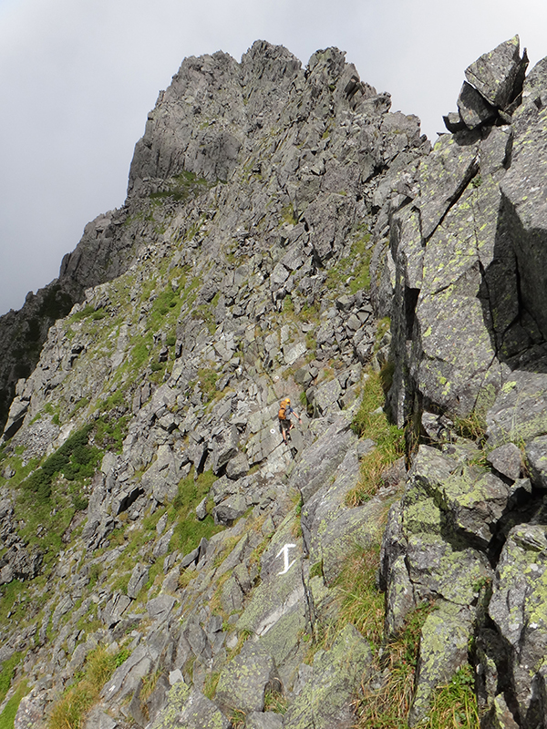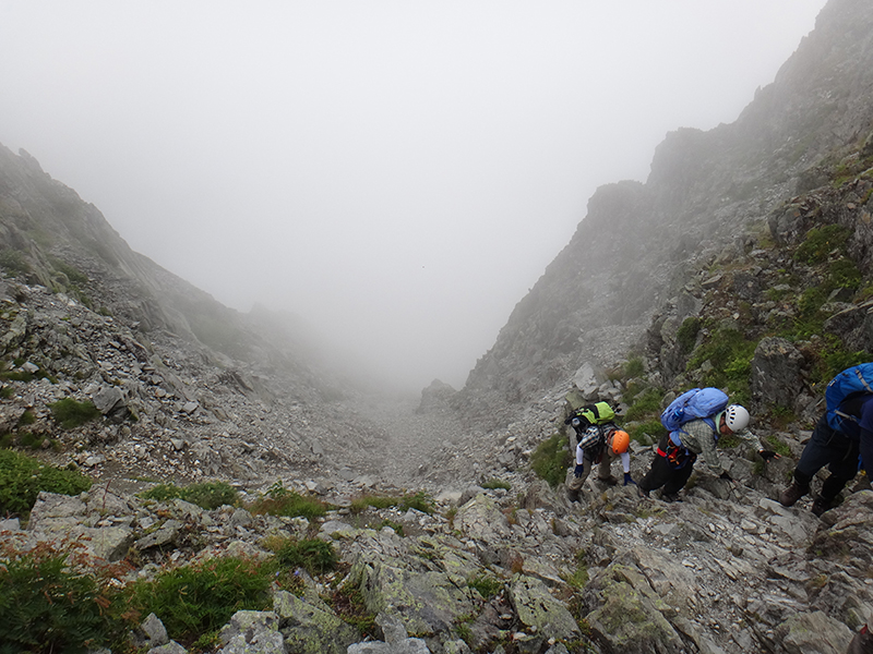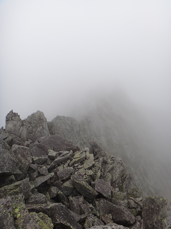 ガスに巻かれた痩せ尾根を何度も上下する。
