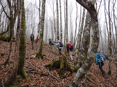 有終の美を飾る晩秋のイヌブナの森と霧深い山頂、太古の息吹を伝える風穴などを楽しんでいただきました。
