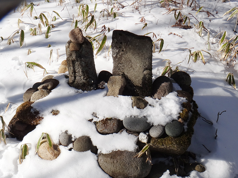 その傍らには首の欠かれた馬頭観音と丸石が佇む。