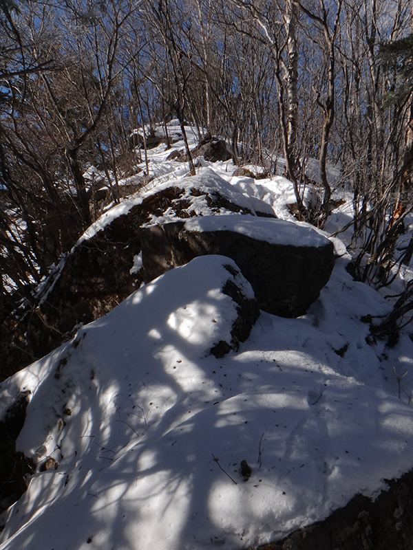 ここは家からも近く、展望にも優れた手頃な低山なのですが、盛期にあえて登る程のことは無い存在でした。今回改めて雪の時期に登ってみて積雪期の入門登山にはとても向いていることを再認識しました。