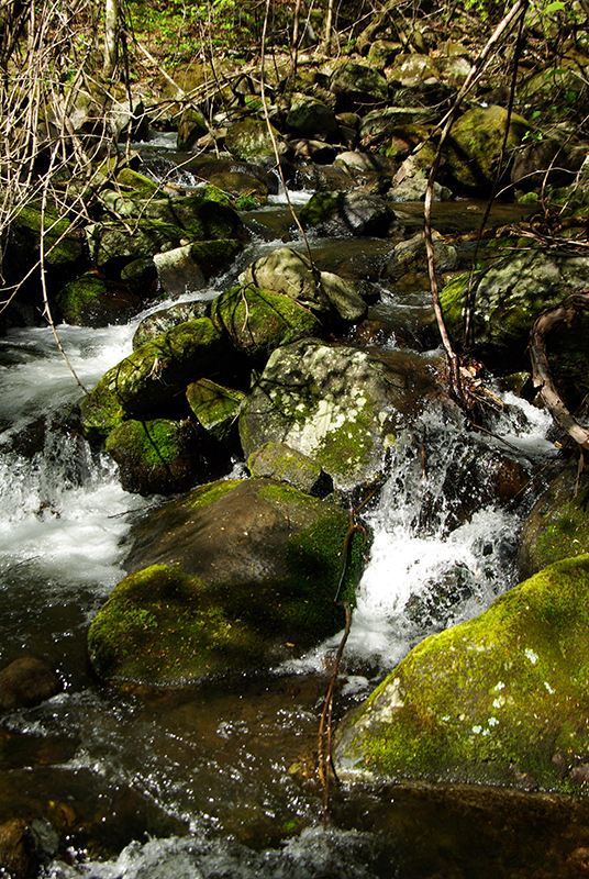 遊歩道が跨ぐ細流にも柔らかな日差し。