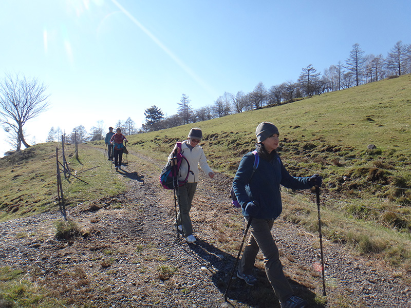 牧場の中の遊歩道をトレッキング。