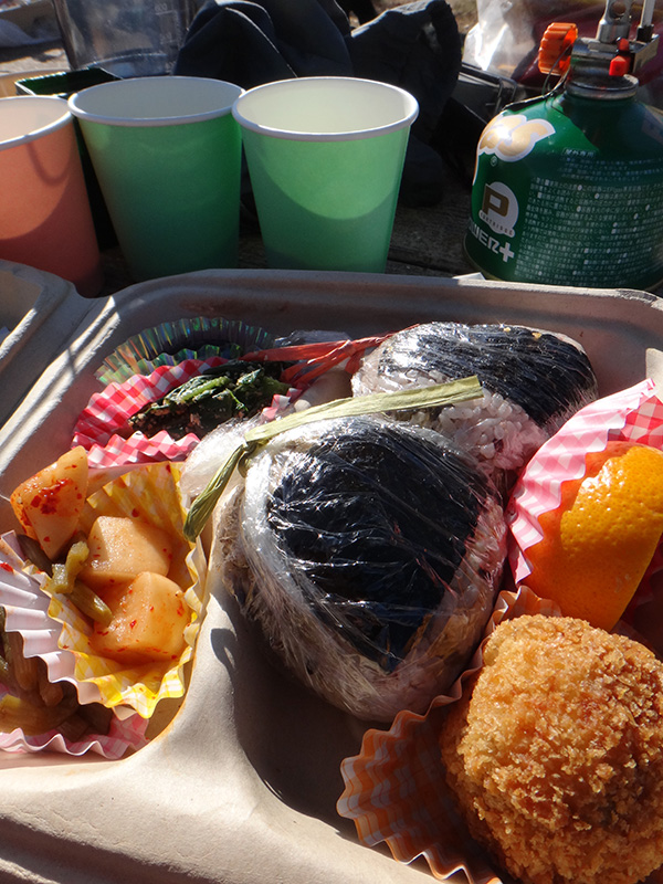 山麓公園のベンチテーブルでランチタイム。