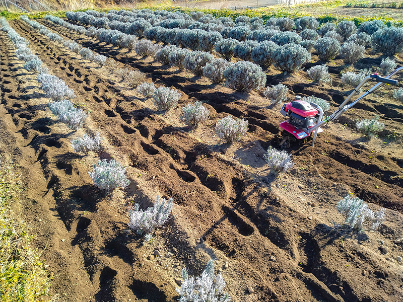 カルチベーターで畝間を中耕して、根回りに防寒対策の土寄せをしました。