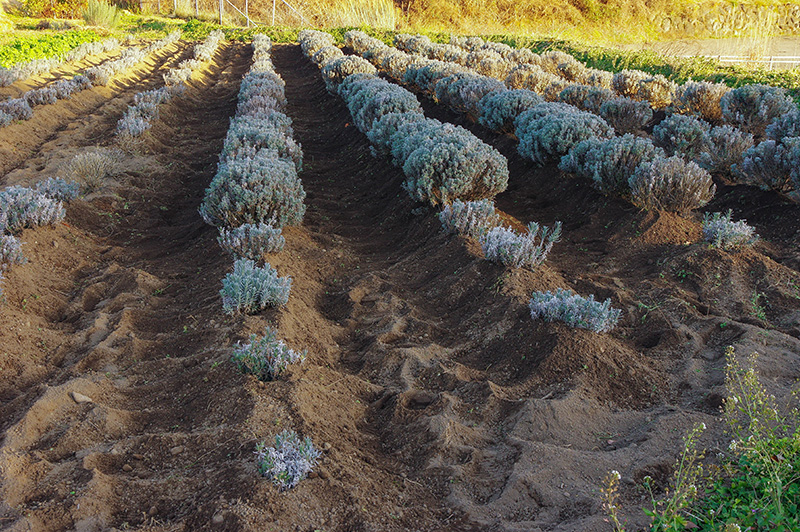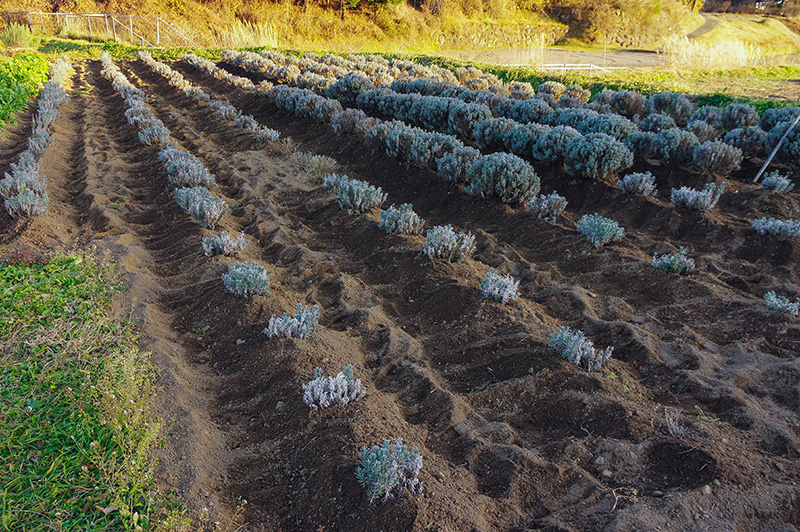 土寄せの終わった畝。北海道では雪が保温材の役目をして根元の凍結を防いでくれるということですが、当地では近年積雪がほとんどないので、この作業は必須と考えています。