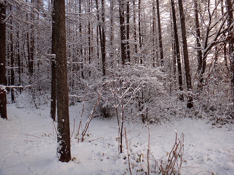 とはいえ南岸低気圧が予定より沖合を通過したこともあり、期待したほどは積もりませんでした。これでは近郊でのスノーシュー開催はまだ難しいですね。今週末にかけて寒気が入る予報なので、週末あたりにもう一度期待しましょう。