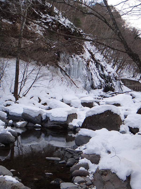 源流域には氷瀑が掛かっていた。