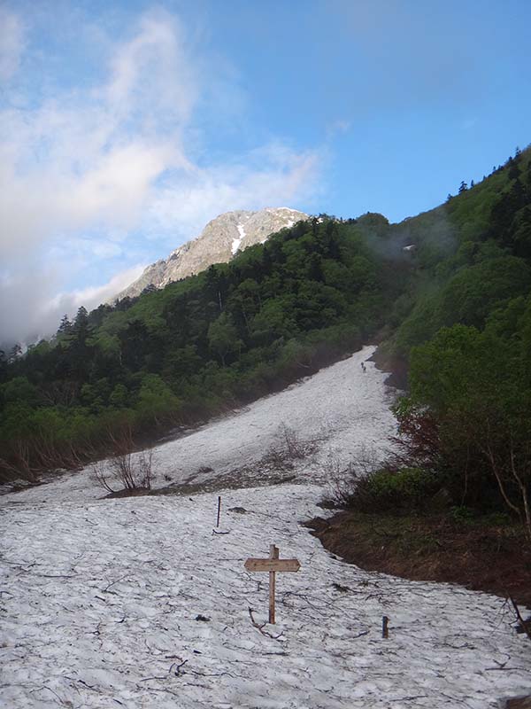 最初の雪渓はいつもより長い。