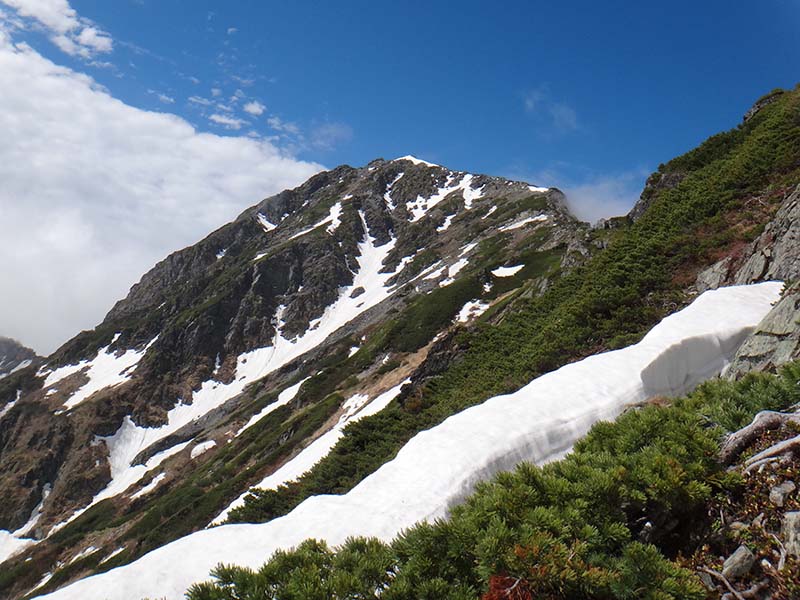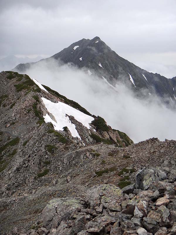 雲間から間ノ岳が姿を現す。