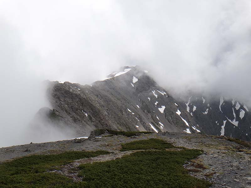 おそるおそる空模様を伺いながら進んで、何とか間ノ岳を往復することが出来た。