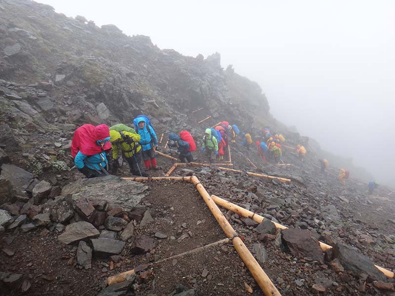 下山日は雨。