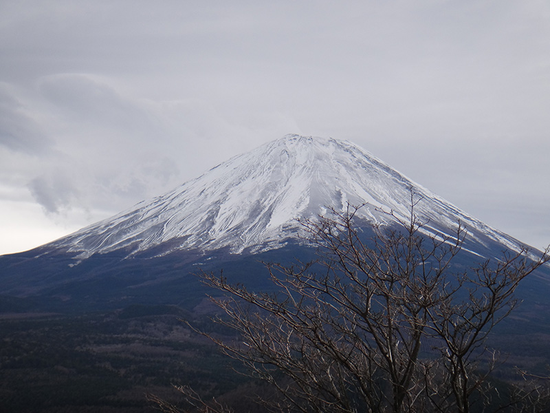冠雪した富士の頂きは曇天と溶け合いながもその山肌は幾条もの浸食痕を浮かび上がらせ、いやが上にも荘厳な佇まいでした。