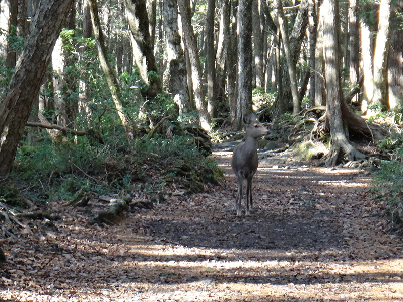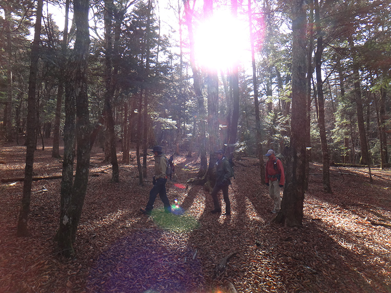相変わらずのブナの巨木や暑く散り敷いた落ち葉の絨毯が傾く日差しに輝く中を本当にゆっくりと彷徨って来ました。