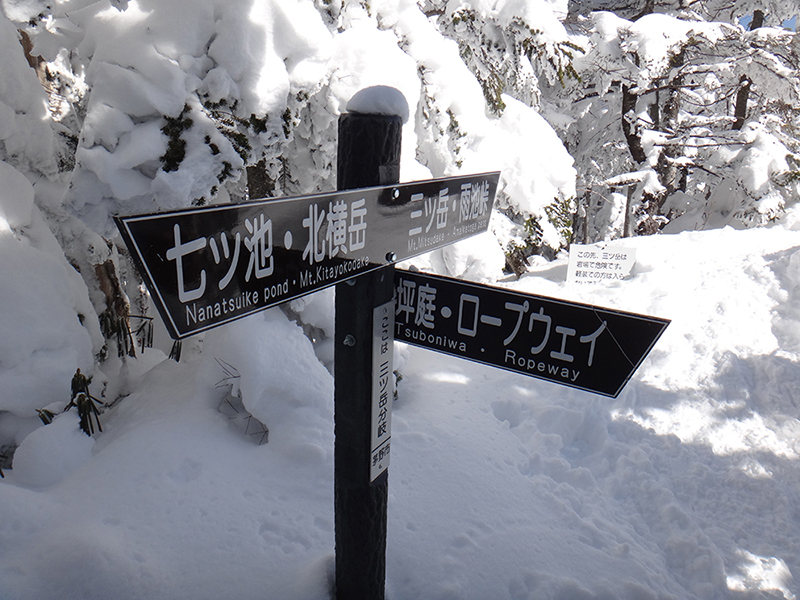 三ッ岳への分岐標識。