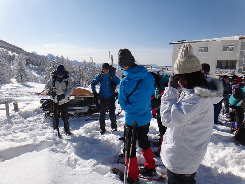 山頂駅はスノーシューツアーで混雑していました。
