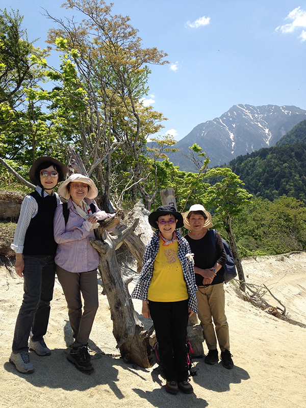 残雪の甲斐駒をバックに。
