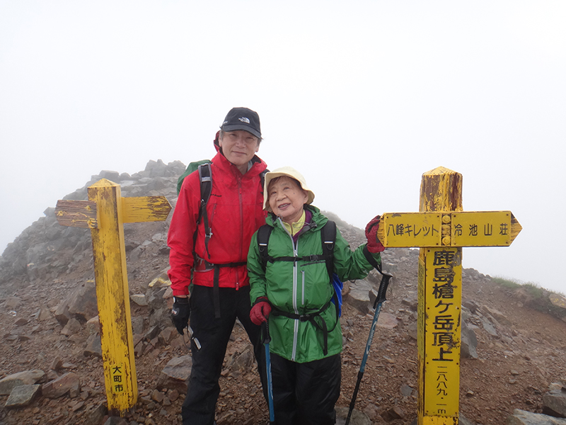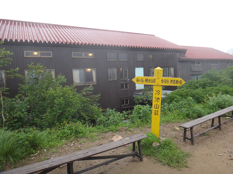 視界のない爺ヶ岳山頂を経由して冷池山荘へ下る。