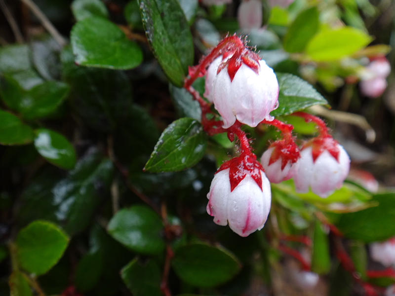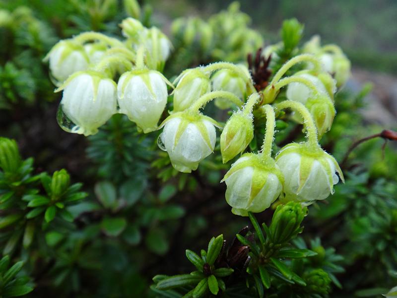 雨滴に濡れるアオノツガザクラ。