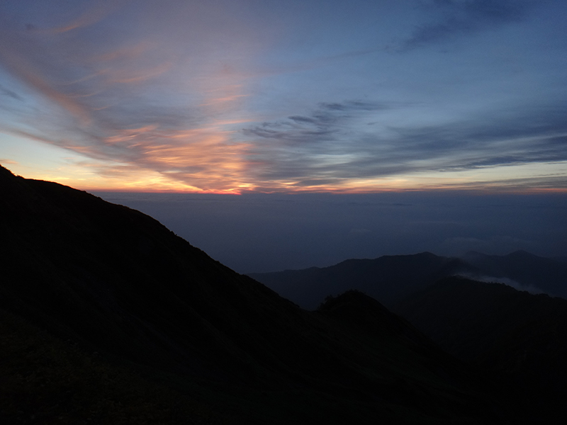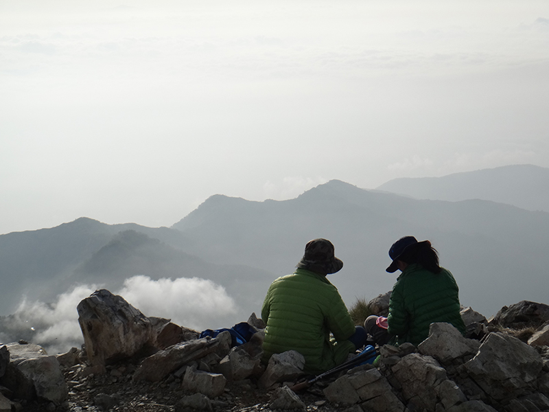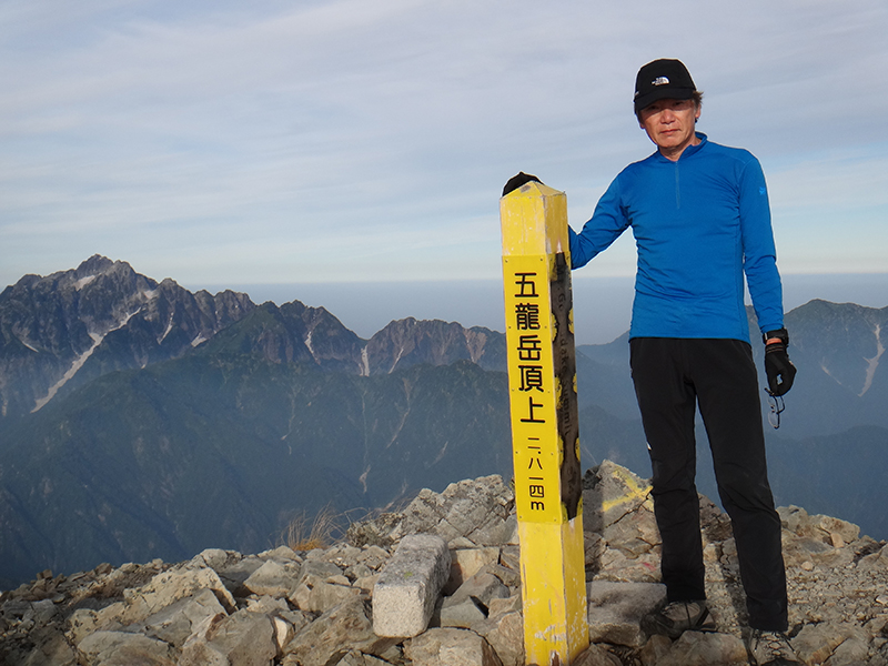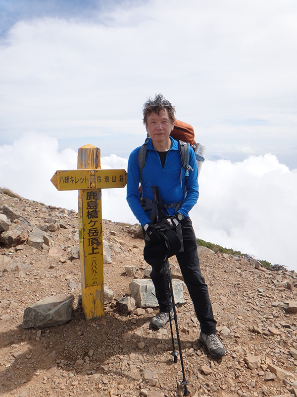 南峰到着。所要時間6時間、少々やつれ気味だがまあこんなところか。と思いきやこの後まだ赤岩尾根経由の5時間の下山が待っていた。お疲れさま!