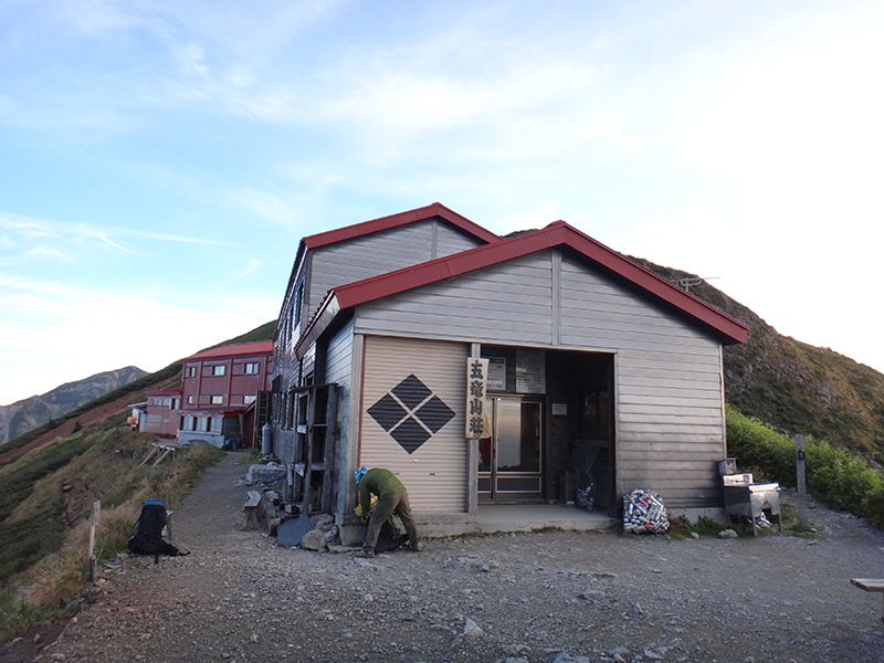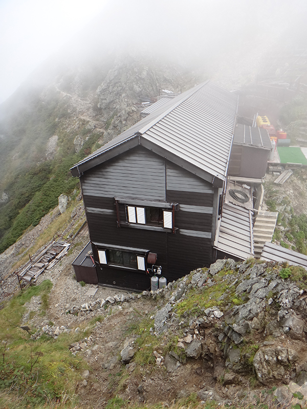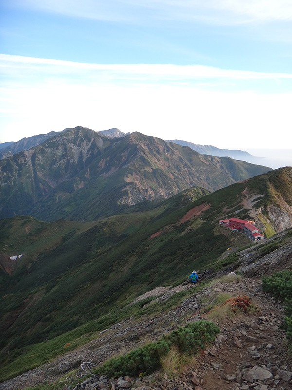 キレット小屋を見下ろす。ようやく核心部まで来た。