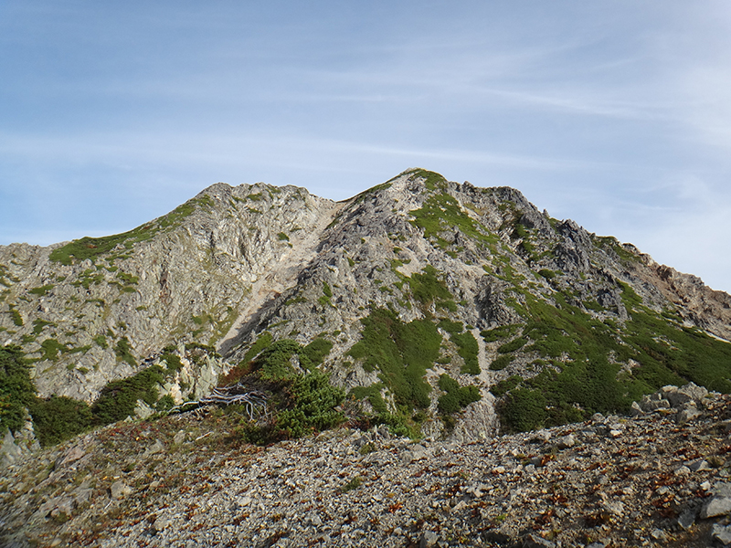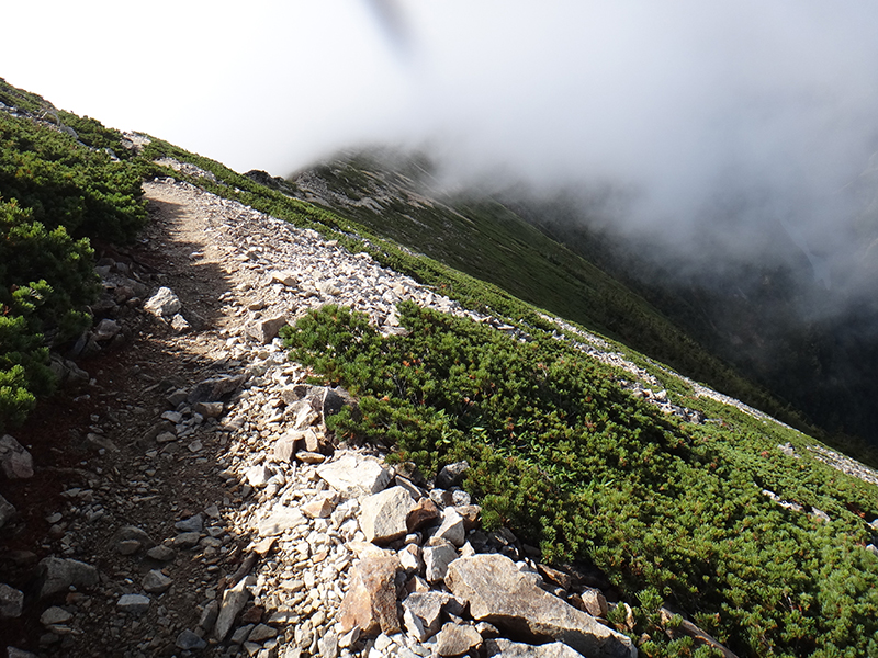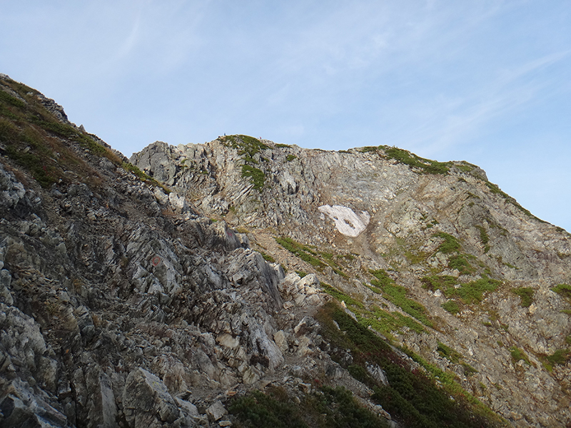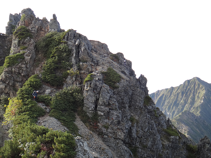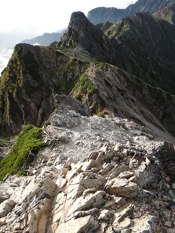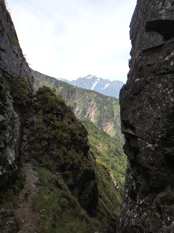 キレット最低部からの剣。こんなところで写真を撮ってはいけません。