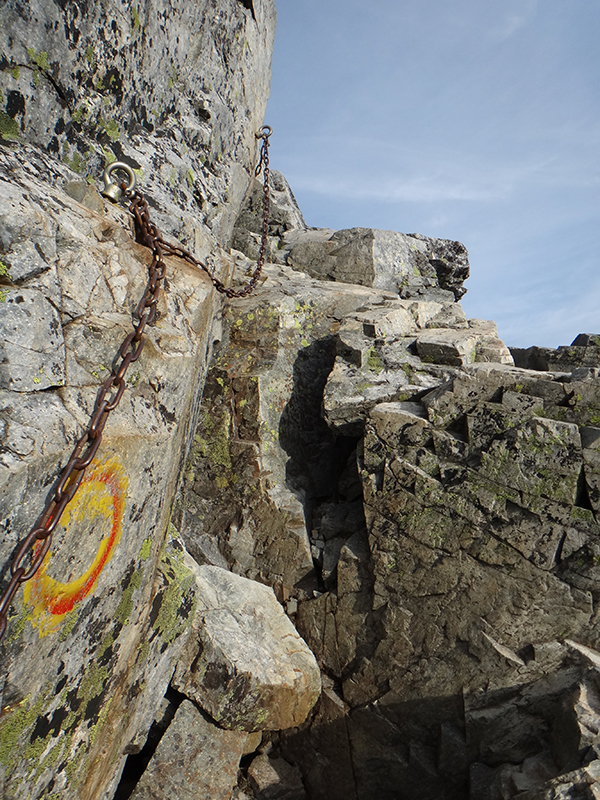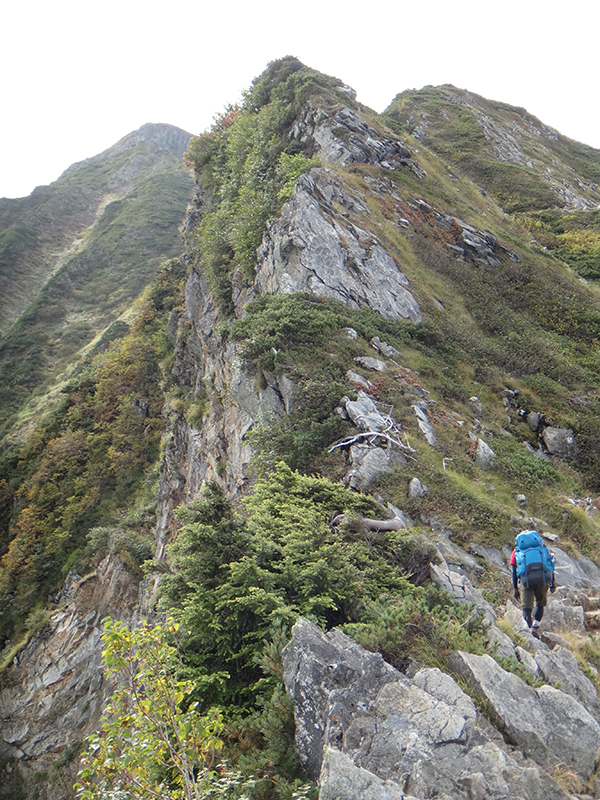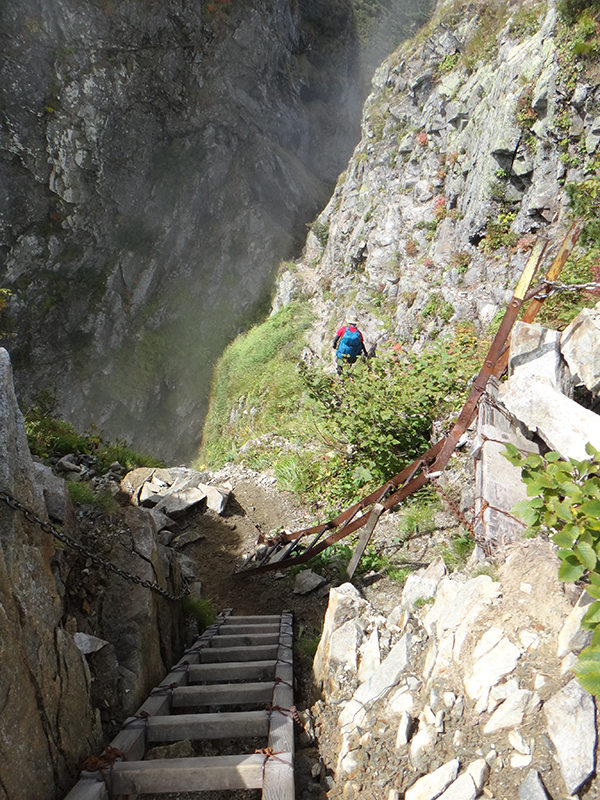 キレット核心部。結構な高度感だ。古い鉄梯子も見える。