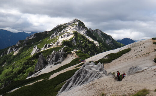 東天狗への登り。背後には稲子岳が独特な姿を見せています。