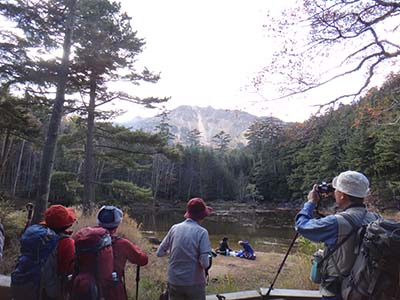 二日間とも快晴に恵まれ、山麓の紅葉と遥かに見渡せる中部高峰の山岳景観を楽しんできました。