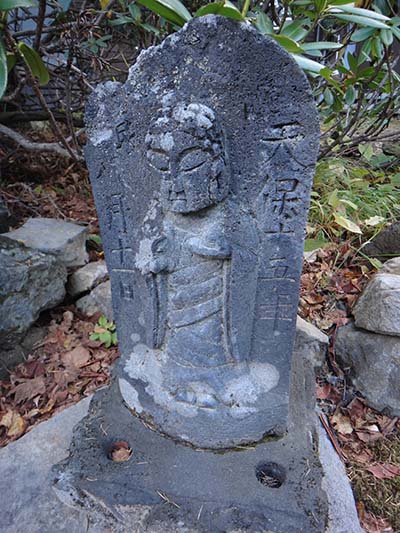 庭に置かれた石仏。地蔵のようですね。天保十五年と刻まれています。