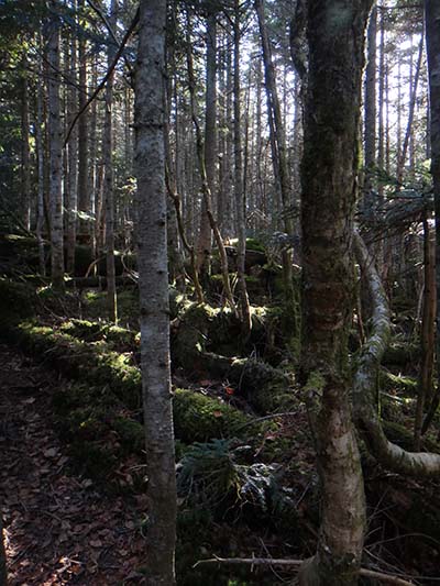 光と影の透明な空気感が印象的な晩秋の登山道。