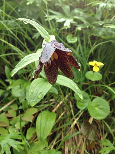 雨に揺れるミヤマクロユリ。黒い花は心を惑わせます。