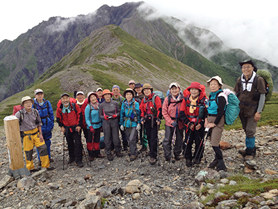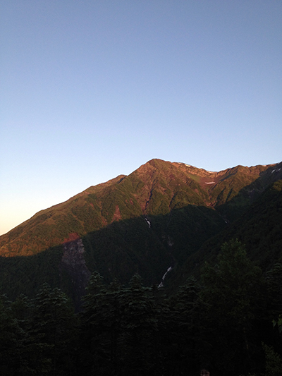 翌朝は快晴。 ようやく全貌を見せてくれたモルゲンロートに染まる赤石岳は苦労の多かった今回の縦走をねぎらうかのように神々しく輝いていました。 ご参加いただいた皆様、本当ににお疲れさまでした。