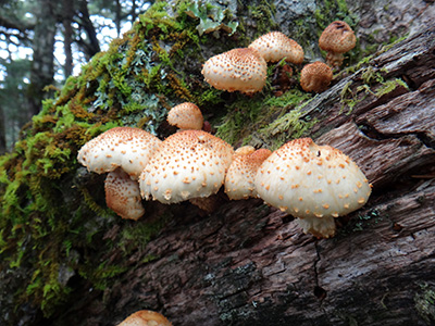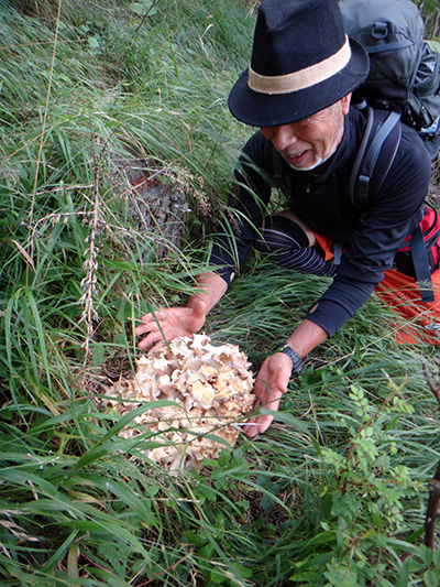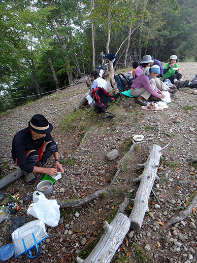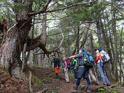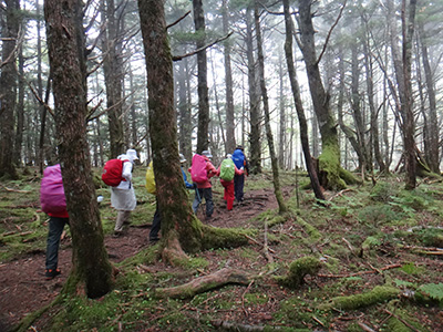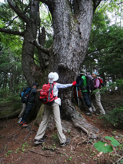 予報通り午後から少し降られましたが、カラマツやツガの巨樹が連なる稜線で、様々に晩夏の森の佇まいを楽しむことが出来ました。