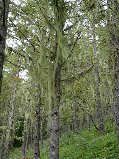サルオガセのカーテン。確かにトロロコンブにも見えるね。