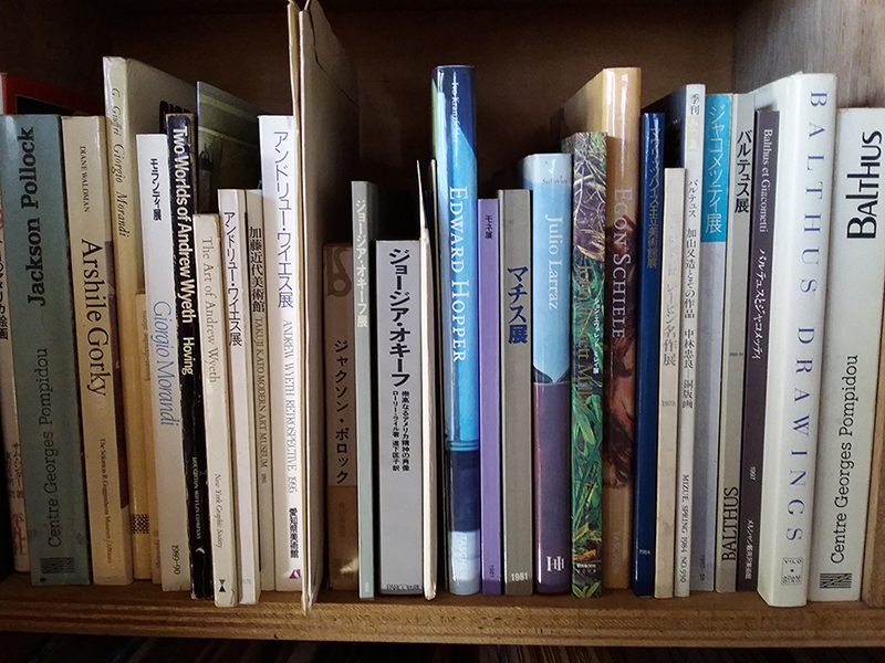 その後西欧の古典に傾倒した時期が長く続き、アメリカを中心とした抽象表現主義の作家や象徴主義の画家達へと興味が移った時期もありました。この棚は画家を中心に並べていますが、バルテュスやオキーフは山梨に戻ってから親しんだ画家達です。