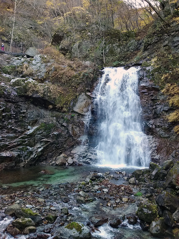 一の滝の前で。