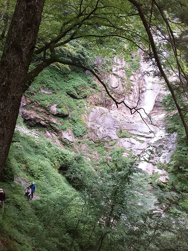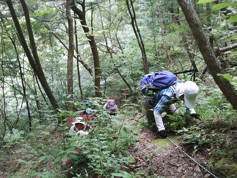 アプローチの林道歩きからいきなりハードな登山道へ。