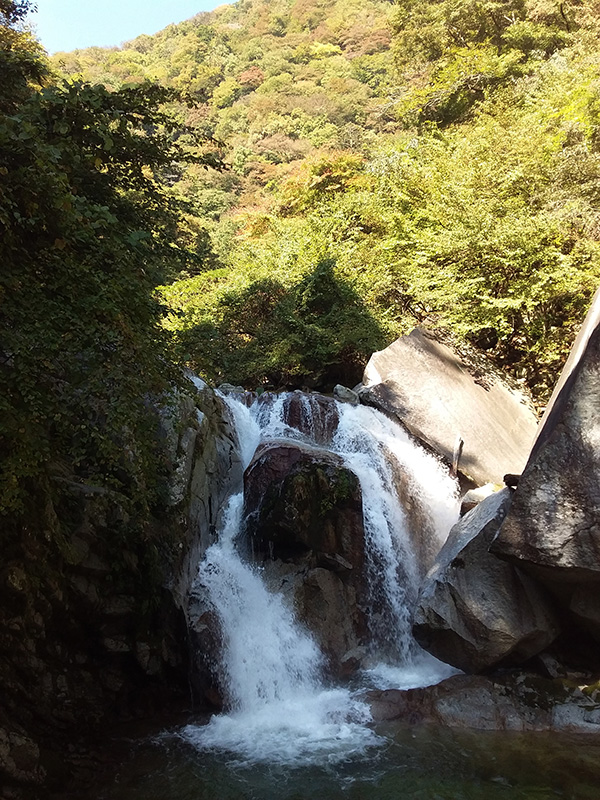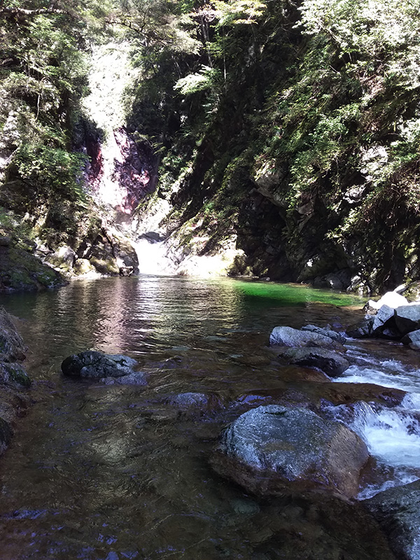 近々に予定されているHP取材ガイドの下見を兼ねて、中々進まない紅葉の状況を見に尾白川渓谷へ。
