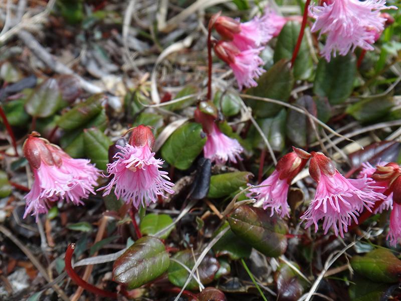 花崗岩の岩のくぼみに咲いたコイワカガミ。少しいじけているように見える。