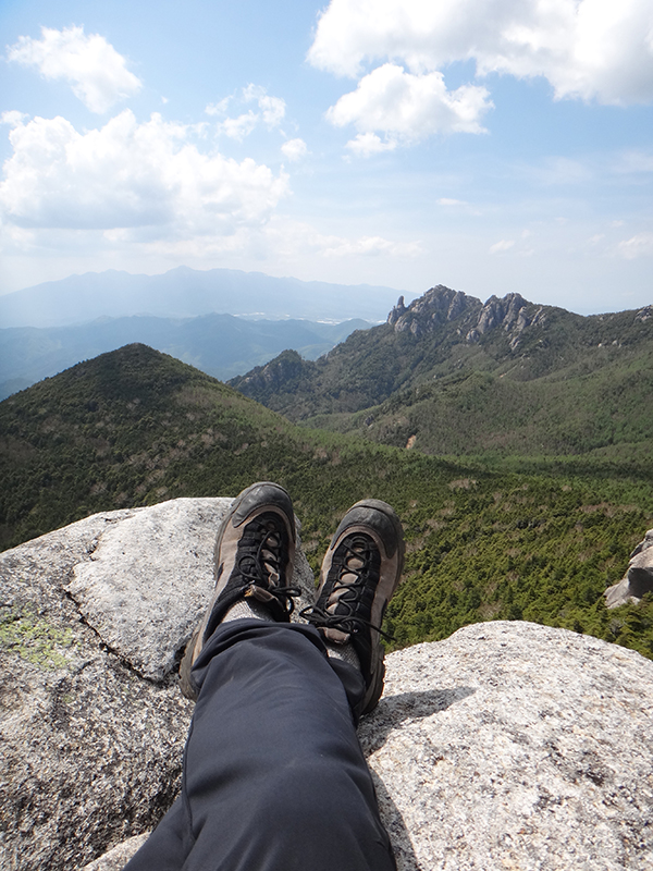 乾いた岩の頂は日差しを浴びて暖かく、微風が心地よい。