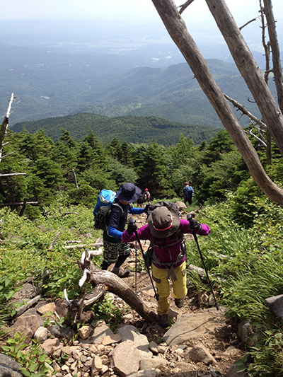 蓼科山にはいくつかの登路がありますが、今回は女ノ神茶屋からのコースをお勧めしました。 このコースはほぼ直登。特に山頂直下の1時間は日差しの照りつける急登をひたすらこなすハードトレイル。でもその分達成感は他のコースを圧倒します。 お勧めの際のキャッチコピーも「あとで自慢出来ます!」