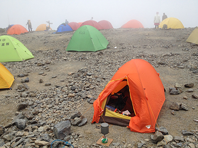 何とか静かそうな場所を見つけて設営を終えたものの、テン場にやってくる登山者は老若男女後を絶たない。特に高齢者と言っていい夫婦のテント泊が目立つのはやはり時代だろうか。