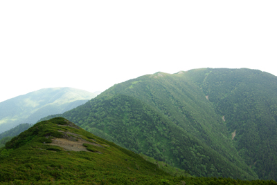 大滝山を経由して鍋冠山を下る頃には雨もやんで、終点も近い林道には既にアサギマダラがさかんに飛び交っている。