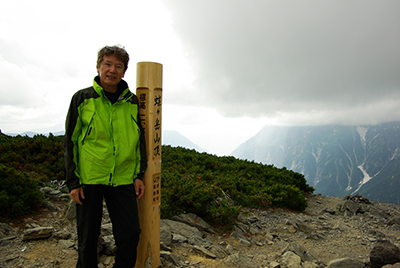 この石積、いやに絵になるな。背景は雲掛かる穂高。